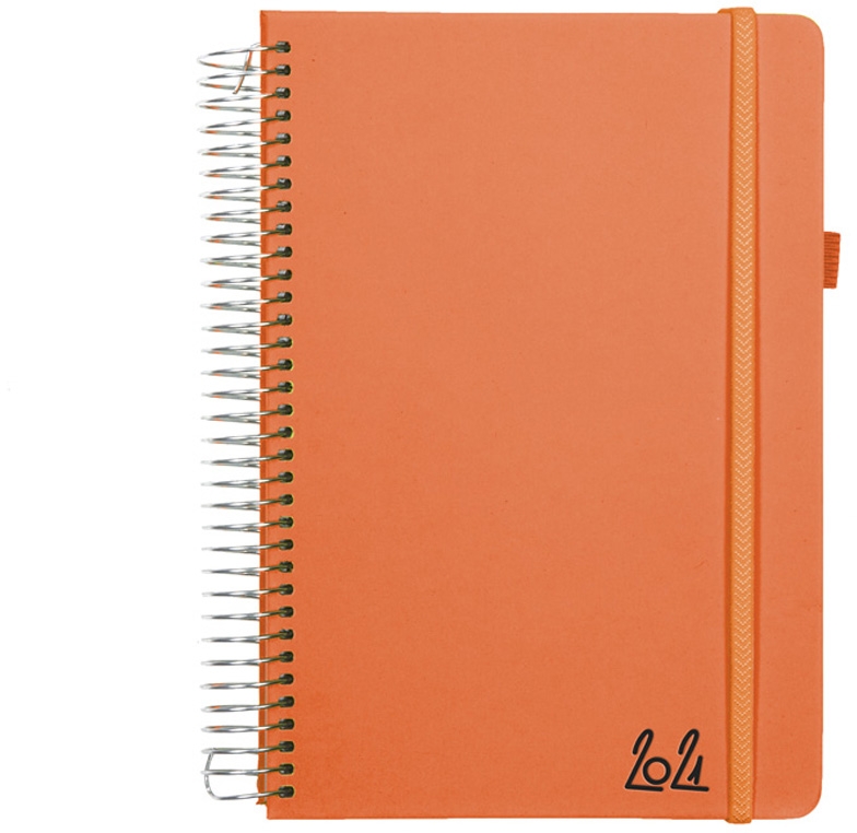 Agenda encuadernada neon a6 (105 x 148 mm) 2021 dia pagina papel 70 gr color naranja.Incorpora calendario trienio, santoral, distancias kilométricas entre ciudades europeas, españolas y portuguesas, hojas de notas, listín telefónico, interior en castellano y portugués.