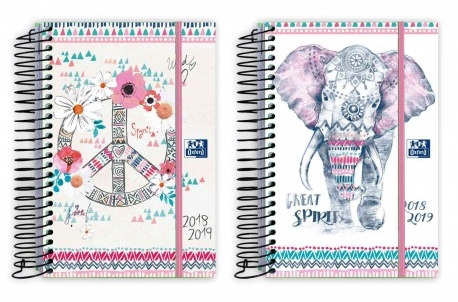 Agenda Escolar Oxford Boho Chic. Tapa Extra Dura con espiral. Cierre con goma.
