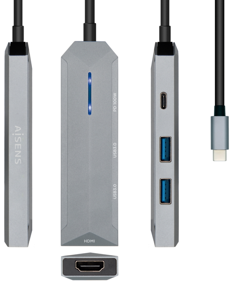 -Conversor USB-C a 1xHDMI, 2xUSB, 1xPD 100W (Max)