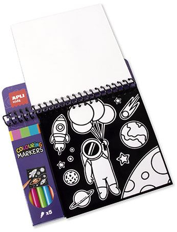 El bloc de dibujos de terciopelo negro con partes para colorear es un producto diseñado para estimular la creatividad y la concentración de los niños. Este juego incluye 5 rotuladores de colores vibrantes: amarillo, fucsia, verde, azul y naranja, que permiten a los pequeños artistas dar vida a sus creaciones. Cada bloc contiene 6 láminas con contornos de ilustraciones realizados en terciopelo negro, lo que facilita que los niños coloreen los espacios en blanco sin miedo a equivocarse.