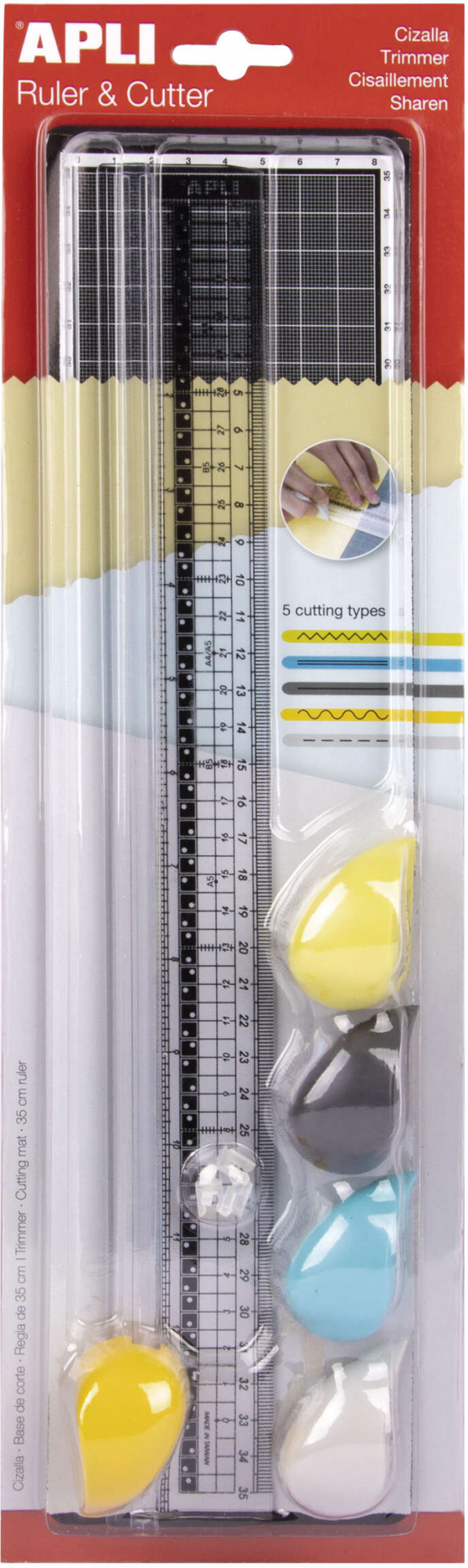 La cizalla de corte es una herramienta compuesta por una regla de 35 cm, una tabla de corte de 10 x 38 cm y 5 cizallas diferentes. La regla cuenta con marcaje en cm, mm y pulgadas, y un clip de seguridad para evitar deslizamientos durante el corte. La tabla de corte incorpora una cuadrícula milimetrada para mayor precisión en tus proyectos y evitar rayaduras. Las 5 cizallas tienen un agarre ergonómico para mayor comodidad y realizan diferentes tipos de corte: línea recta, Zigzag, ondulado, línea discontinua y marca de hendido. Esta herramienta es versátil y útil tanto en casa como en la oficina, permitiéndote cortar y realizar manualidades con papeles, cartulinas, fotos, papel de fax, documentos plastificados, etc.