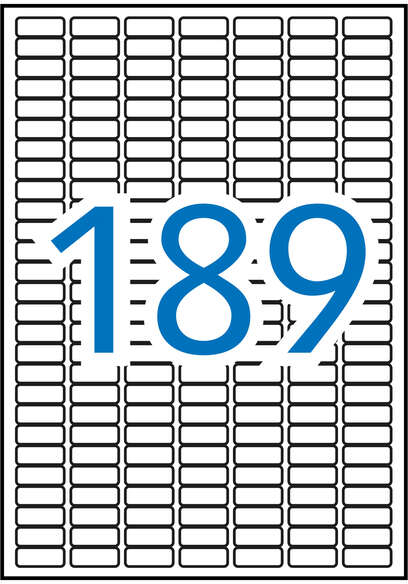 Etiquetas blancas cantos romos de tamaño 25,4 x 10,0 mm con adhesivo permanente para múltiples usos. Este pack incluye 10 hojas con un total de 1.890 etiquetas, ideales para identificar envíos de correspondencia, objetos, paquetería o para clasificar.