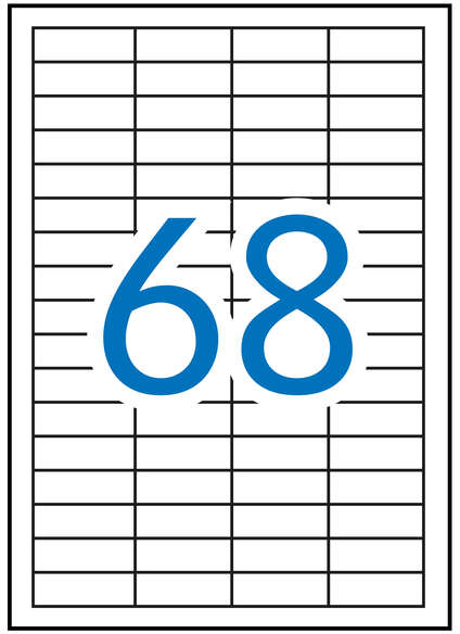 Etiquetas blancas cantos rectos de tamaño 48,5 x 16,9 mm con adhesivo permanente para múltiples usos. Este pack incluye 500 hojas, lo que equivale a 34.000 etiquetas. Son ideales para identificar envíos de correspondencia, objetos, paquetería o para clasificar. Además, ofrecen una excelente calidad de impresión en impresoras inkjet, láser o fotocopiadoras.