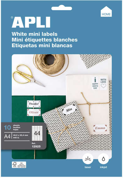- Pack con 10 hojas (440 etiquetas).