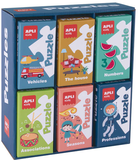 - Expositor con 6 puzles educativos de diferentes temáticas.