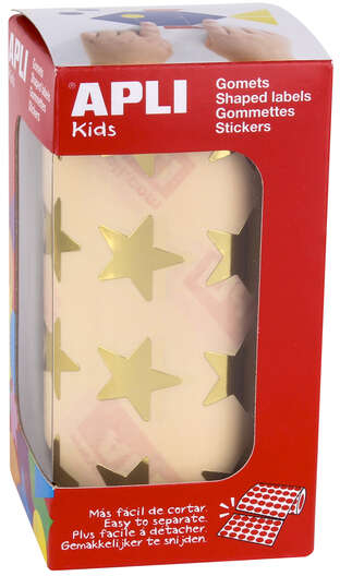 - Gomets en forma de estrella de tamaño 19,5 mm en color oro metalizado con adhesivo permanente.
