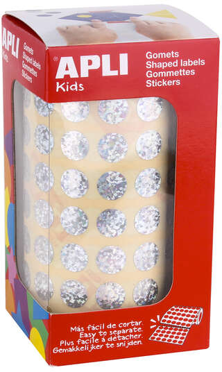 Rollo de gomets redondos holográficos con adhesivo permanente de tamaño Ø 10,5 mm. Este producto cuenta con 59 hojas pretroqueladas para una fácil separación, lo que equivale a un total de 5.192 gomets por rollo. Es el formato perfecto para su uso en escuelas, guarderías, talleres infantiles o cualquier otro colectivo que trate con niños. Los gomets son una actividad básica que permite desarrollar la psicomotricidad fina y trabajar varias capacidades y habilidades como el conocimiento de los colores, las formas geométricas y los tamaños, la lógica y la creatividad, el trabajo en equipo o el dominio del espacio, entre otros.