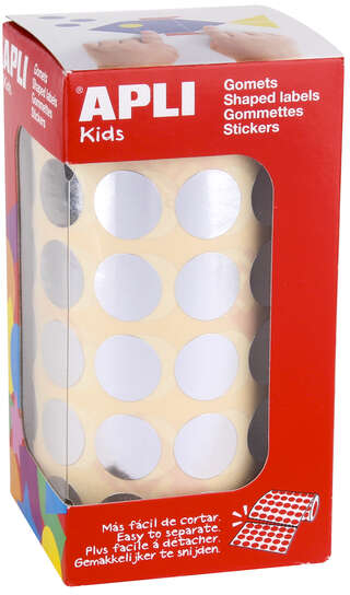 Los rollos de gomets redondos de tamaño Ø 15 mm en color plata metalizado con adhesivo permanente son el producto perfecto para aquellos que buscan una herramienta de trabajo para escuelas, guarderías, talleres infantiles o cualquier otro colectivo que trate con niños. Cada rollo contiene 59 hojas pretroqueladas para una fácil separación, un total de 2.832 gomets por rollo.