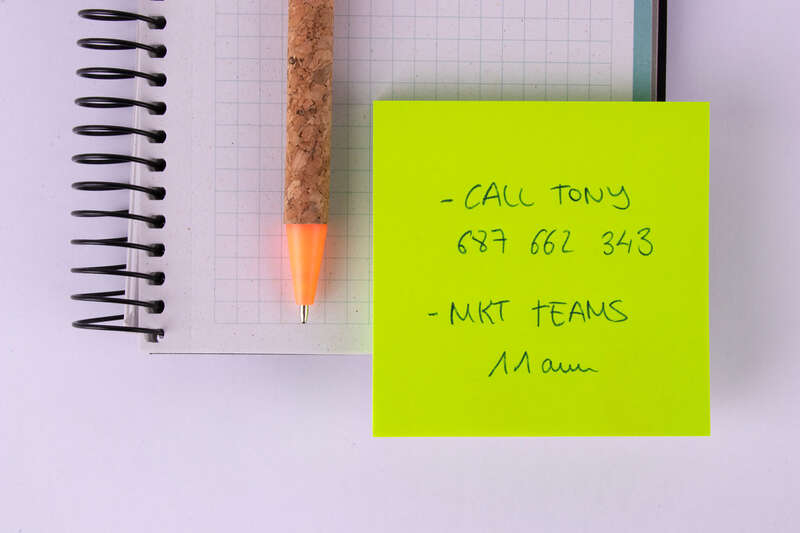 - Bloc de notas adhesivas de 75 x 75 mm en color verde flúor.