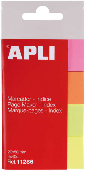 Este pack de 4 colores de índices de papel de 50 x 20 mm flexibles es la solución perfecta para marcar o localizar información de forma rápida y eficiente. Con un total de 40 índices por color en un cómodo formato libro, los colores disponibles son rosa flúor, naranja flúor, verde flúor y amarillo flúor. Los índices de APLI son ideales para codificar información por colores y escribir encima. Además, su adhesivo reposicionable permite pegarlos más de una vez sin dejar residuo.