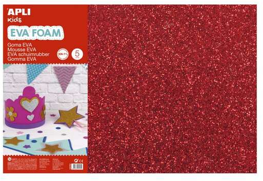 Goma EVA con purpurina en color rojo en tamaño 600 x 400 mm y grosor de 2 mm. Cada pack contiene 3 hojas del mismo color. La goma EVA es un material idóneo para manualidades tanto para uso doméstico como para uso escolar. Es suave, flexible, fácil de cortar, pegar y pintar. También es impermeable y moldeable al calor. El material básico para hacer fofuchas, máscaras, coronas, disfraces y todo tipo de manualidades.