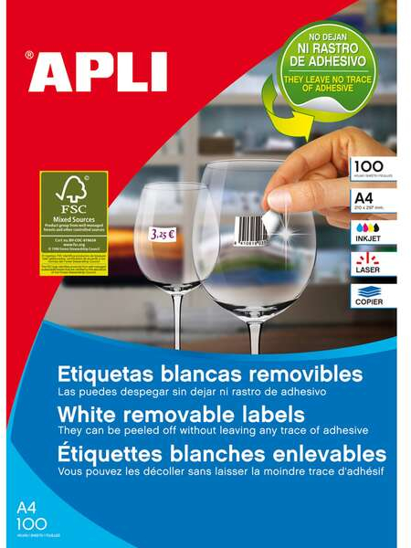 Apli Pack de 400 Etiquetas Removibles 105x148mm 100 Hojas x 4 Etiquetas Cantos Rectos Permite Retirar sin Dejar Rastro Color Blanco