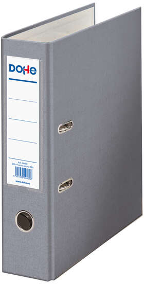 Fabricados en cartón rígido, forrado con polipropileno de colores en exterior y papel offset en el interior. Con ollao, rado, tarjetero para etiqueta en el lomo y cantonera larga metálica para reforzar los bordes inferiores. Mecanismo de palanca metálico niquelado de máxima calidad.