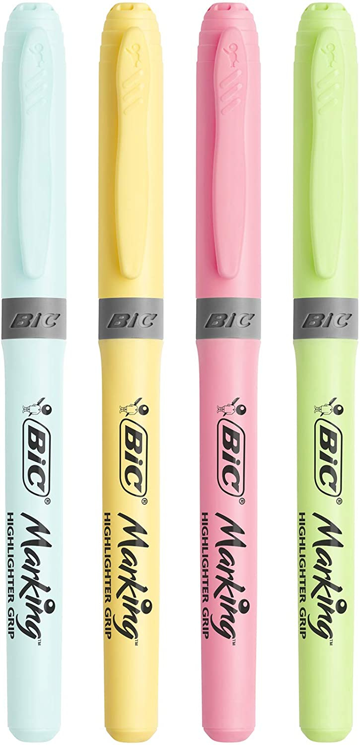 Los marcadores BIC Hightlighter Grip Pastel están diseñados con una avanzada tecnología que evita que se sequen tras 8 horas destapados. Viene con una punta biselada modular que marca tanto líneas finas con gran precisión como trazos gruesos.
