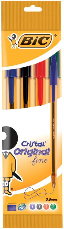 BIC Fine es un bolígrafo de alta precisión para escribir en cualquier tipo de papel. La tapa indica el color de la tinta.