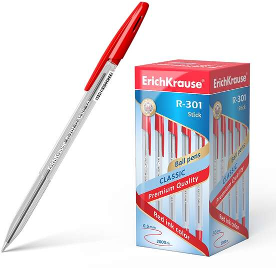 Boligrafo Estandar ErichKrause R-301 con tapa Cuerpo transparente. Punta de acero inoxidable. Sin grip. Capuchon con clip del color de la tinta. Trazo normal.