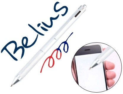 Boligrafo 4 en 1: bolígrafo azul y rojo, portaminas y puntero para pantallas táctiles.