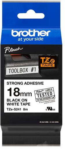 Más información sobre Brother TZeS241 Cinta Laminada Super Adhesiva Original de Etiquetas Texto negro sobre fondo blanco Ancho 18mm x 8 metros