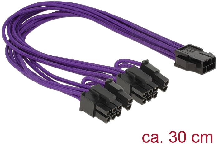 Kabel power pcie 6 pin bu > 2 x 8 pin st 30 cm delock violett