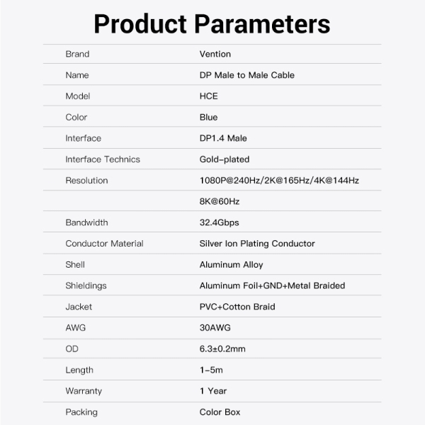 Vention Cable DisplayPort 1.4 8K Trenzado - Resolucion 8K@60Hz - 4K@144Hz - HDR - Compatible FreeSync/G-Sync