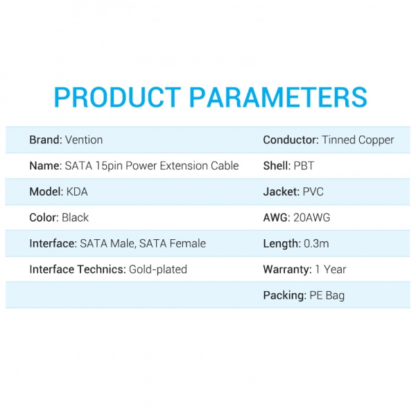 Vention Cable de Extensión de Alimentación SATA 15P - 0,3 M - Color Negro - KDABY