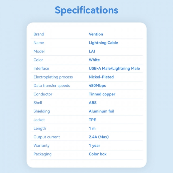 -El cable VENTION USB a Lightning fabricado con chips originales proporciona un voltaje seguro y estable.
