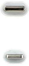 Cable Lightning con conector tipo Lightning macho en un extremo y conector USB-C macho en el otro.