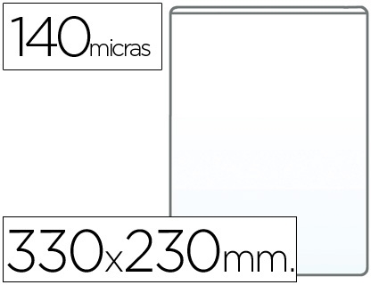 Adecuada para la protección y presentación de documentos. Fabricada en pvctransparente. Contorno soldado en u. Abertura superior con desmentido. 140 micras. Tamaño folio.