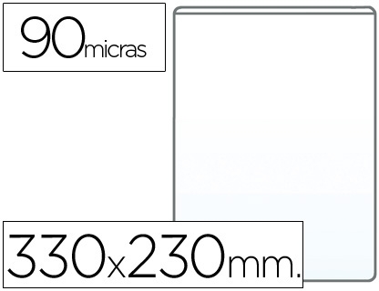Adecuada para la protección y presentación de documentos. Fabricada en pvctransparente. Contorno soldado en u. Abertura superior con desmentido. 90micras. Tamaño folio.