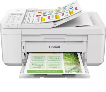 La Canon PIXMA TR4750i imprime, escanea, copia y envía fax con facilidad: es perfecta para tu oficina en casa. La configuración mediante la app de smartphone es rápida. Contrólala desde dispositivos inteligentes mediante Wi-Fi y Canon PRINT. Lleva integrado imprimir sin aplicaciones con Mopria y Apple AirPrint. La tintas de pigmento negro y las colorantes ofrecen un texto nítido, imágenes vivas e impresión de calidad en múltiples soportes. Disfruta de cartuchos de tinta fácilmente sustituibles, carga de papel mejorada, impresión a doble cara automática y ADF de 20 hojas para copiar y escanear documentos de varias páginas. Además, con la función de recordatorio de retirada de documentos, nunca se te olvidarán documentos que hayas copiado o escaneado. Compatible con PIXMA Print Plan, una suscripción de tintas mensual basada en las páginas impresas.