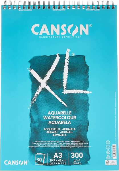 Canson XL Aquarelle Album Espiral Microperforado de 30 Hojas A3 - Grano Fino - 29.7x42cm - 300g.