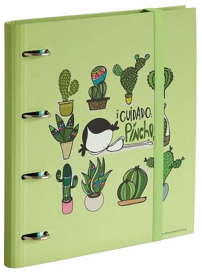 Carpeblock de 4 anillas de 35mm de cartón compacto grueso forrado. 320x280mm.Con interior de 120 hojas de 90 gr.con borde en 5 colores.Cierre de goma plana extra ancha de color.