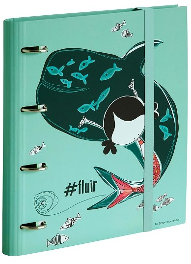 Carpeblock de 4 anillas de 35mm de cartón compacto grueso forrado. 320x280mm.Con interior de 120 hojas de 90 gr.con borde en 5 colores.Cierre de goma plana extra ancha de color.