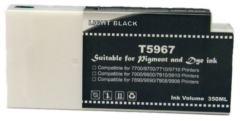Nuestro cartucho compatible Cartucho alternativo a Epson T5967 C13T596700 barata con una capacidad de 350 ml tiene un precio notablemente inferior al original C13T596700 ofreciendo un mayor rendimiento con la misma calidad de impresión.