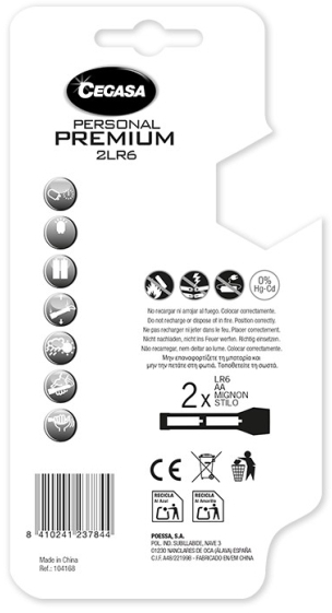Cegasa Personal Premium Linterna 20lm Características: -Fabricada en aluminio anodizado. -Apta para todo tipo de usos. -3 Leds alta luminosidad, gran duración y bajo consumo. -Resistencia a golpes y humedad. -Batería: 2 x LR6 (incluidas).