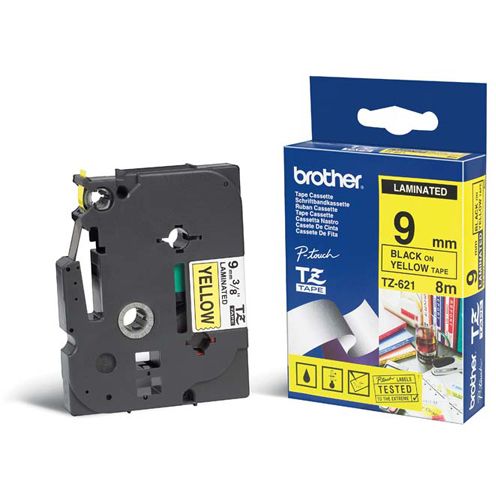 CINTA LAMINADA AMARILLO/NEGRO 9MMX8M BROTHER TZ621