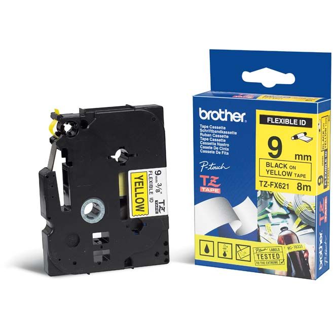 CINTA LAMINADA FLEXIBLE AMARILLO/NEGRO 9MMX8M BROTHER TZFX-621
