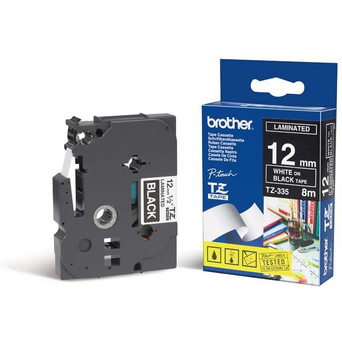 CINTA LAMINADA NEGRO/BLANCO 12MMX8M BROTHER TZ-335