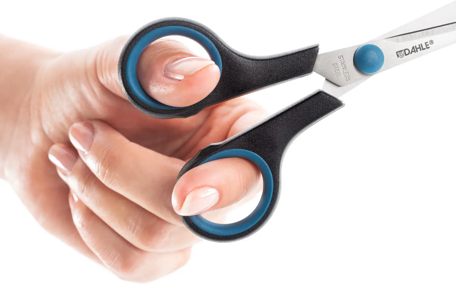 Tijeras de agarre cómodo con mango suave de goma para zurdos.