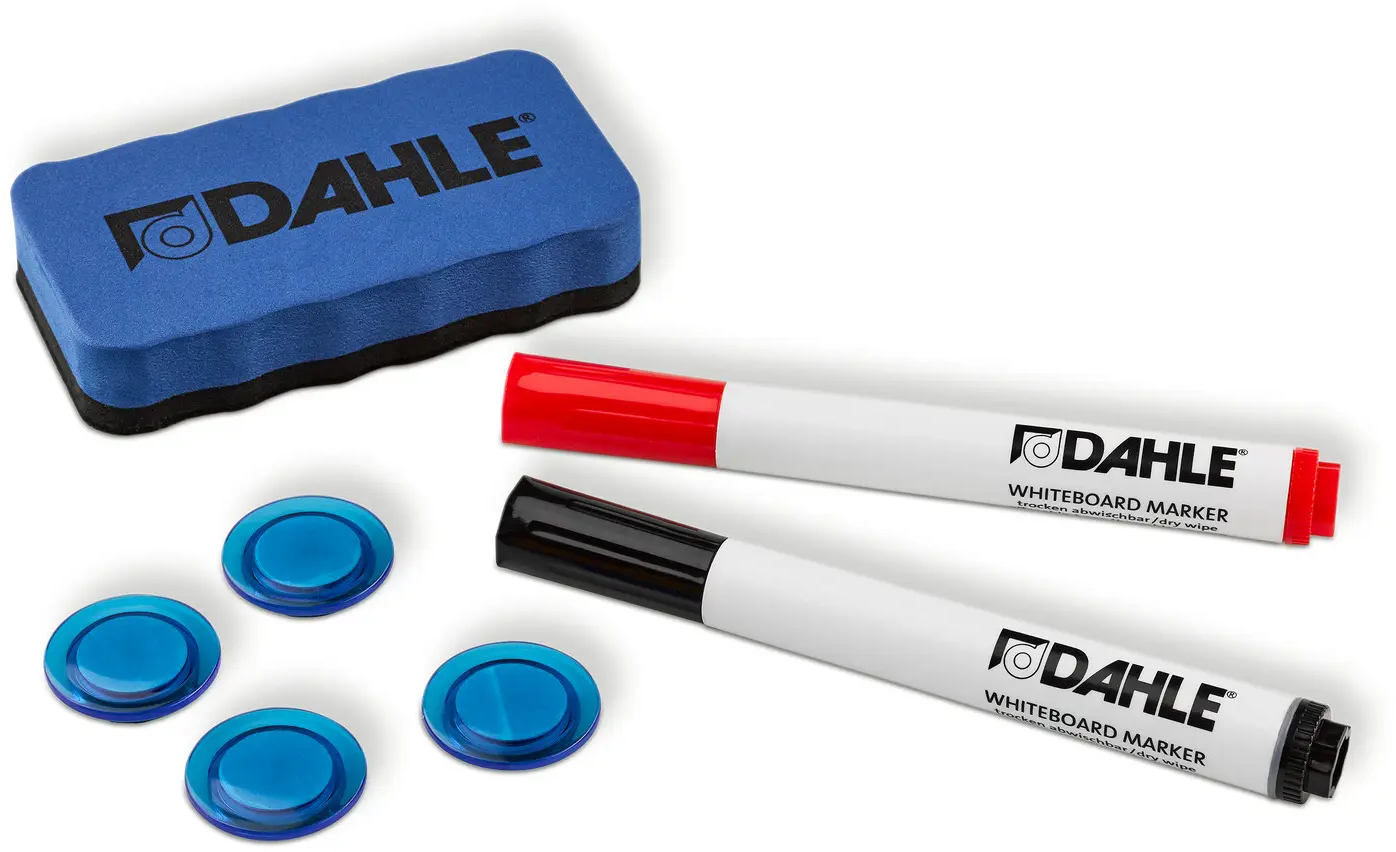Set de inicio BASIC Especificaciones: -1 borrador magnético -2 rotuladores para pizarra blanca (rojo y negro) -4 imanes (diámetro 30 mm)