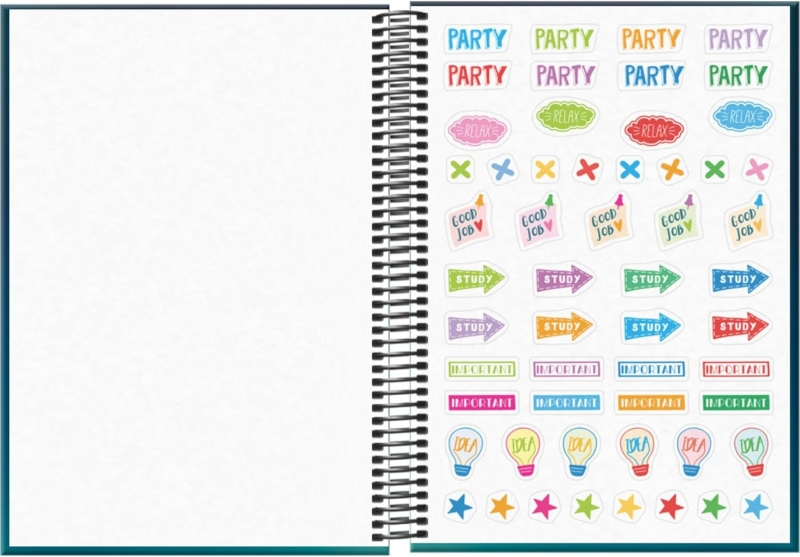 -Hojas: Papel offset de 70 g/m2 y 4 hojas de pegatinas impresas a todo color.