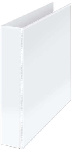 Carpetas en cartón forrado con PVC blanco en tamaño Din A-4. Con bolsa de plástico transparente en el lomo y portada para personalización. Mecanismo de anillas mixtas.