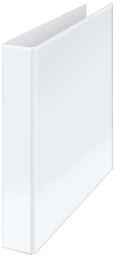 Carpetas en cartón forrado con PVC blanco en tamaño Din A-4. Con bolsa de plástico transparente en el lomo y portada para personalización. Mecanismo de anillas mixtas.