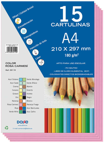 Más información sobre PACK 15 Cartulinas A4 - Gramaje de 180g - Rosa