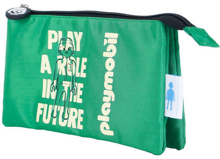 Portatodo con tres compartimentos para guardar múltiples utensilios. Fabricado en flexible y resistente poliéster. Cierre doble de cremalleras, una interior para el bolsillo central y otra exterior para los compartimentos laterales y central.