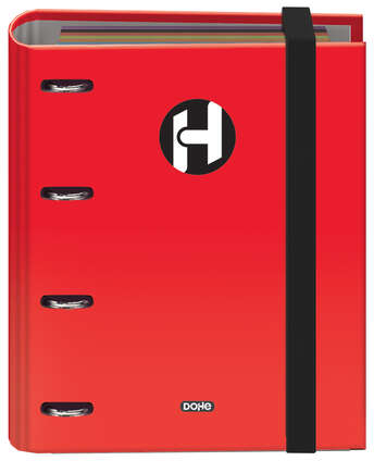 Carpeta recambio tamaño A5 con 4 anillas redondas de 25 mm. Cierre de goma elástica. Con recambio de 100 hojas de 90 gr y 4 taladros. Cuadrícula de 5 mm con banda de color en 6 colores.