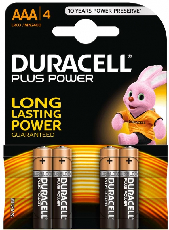 Duracell PACK 4 Pilas AAA LR03 Plus Power Alcalinas MN2400B4
