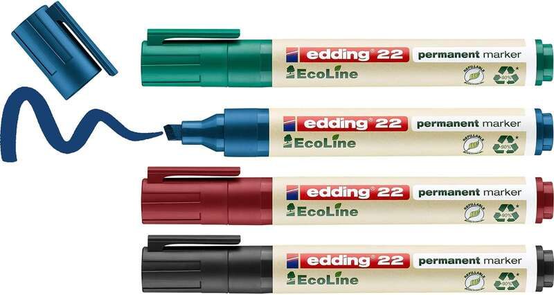 Lo viejo cobra nueva vida con el marcador permanente edding 22 EcoLine. Al menos el 90 % del plástico utilizado procede de materiales reciclados, y el 83 % de ese plástico procede de plástico de postconsumo, como el de las regaderas o los envases de yogures usados. Esto lo convierte en el asistente ideal para darle un toque más verde a cualquier negocio o institución. Su punta biselada permite conseguir una combinación de trazos finos y gruesos.