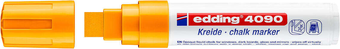 Más información sobre Edding 4090 Rotulador de Tiza Liquida - Punta Biselada - Trazo entre 4 y 15mm - Olor Neutro - Color Naranja Neon