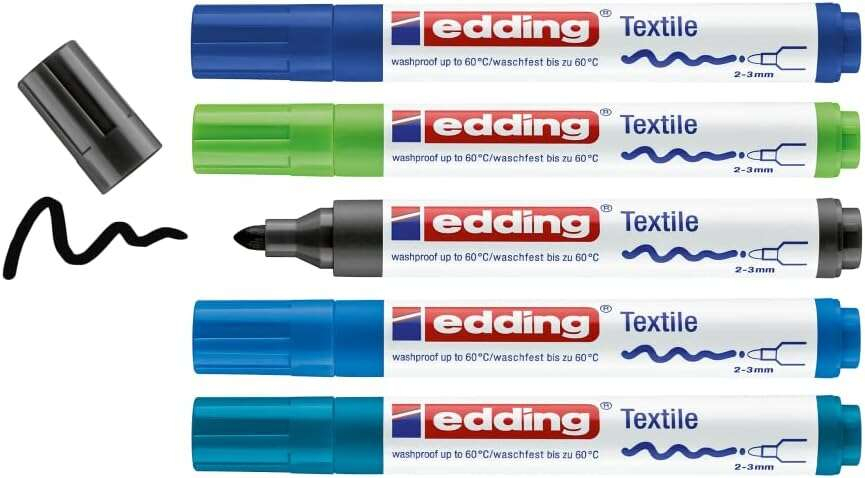 ¿Te gustaría adornar las camisetas de los niños con dibujos? ¿O qué tal escribir un mensaje personalizado en el pijama del bebé? ¿Tal vez dibujar en cojines para decorarlos o renovar el tapizado viejo de una silla? El edding 4500 marcador textil ofrece una gran calidad y una excelente definición en multitud de tejidos no tratados químicamente de colores suaves, como algodón y lino, y en diversos tejidos mixtos. Después de dibujar sobre el material elegido, puedes fijar la tinta que hayas aplicado planchándolo una vez (sin vapor). En adelante, tu diseño será resistente a los lavados hasta a 60 °C.